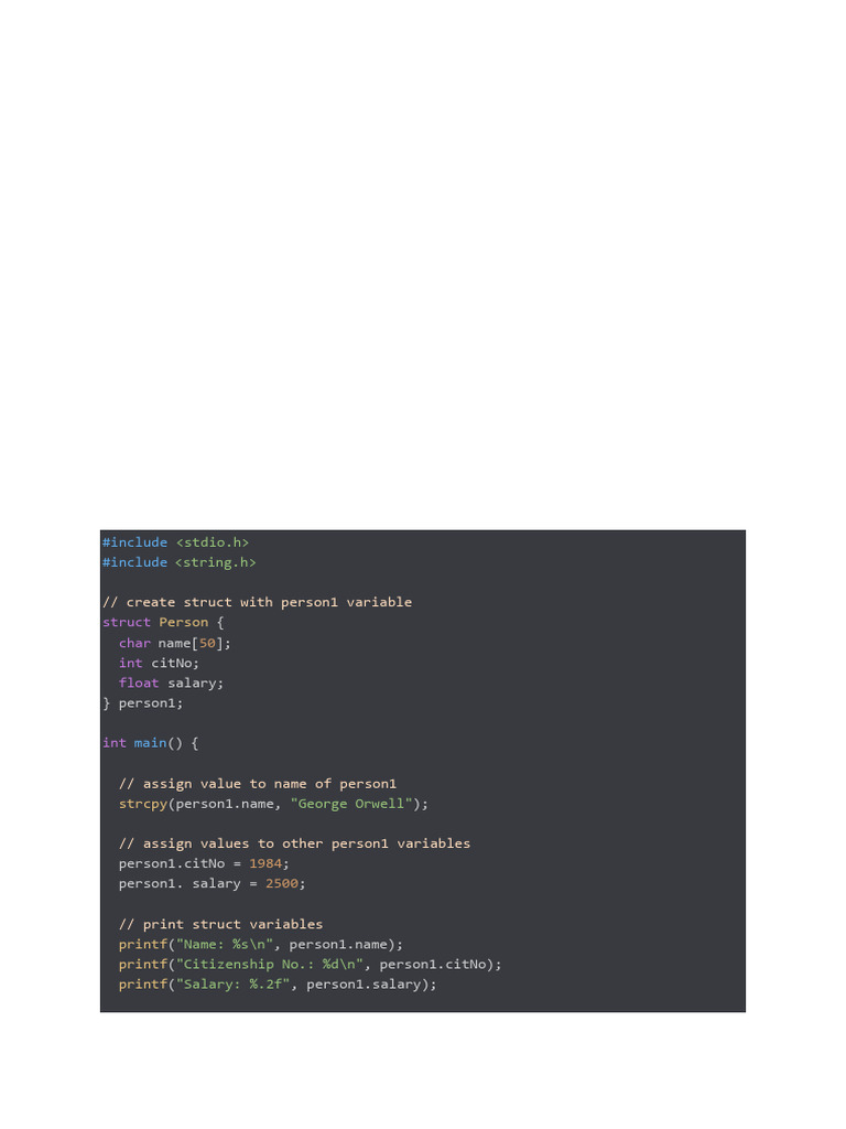 types into a single type. The struct keyword is used to define the structure in the C programming