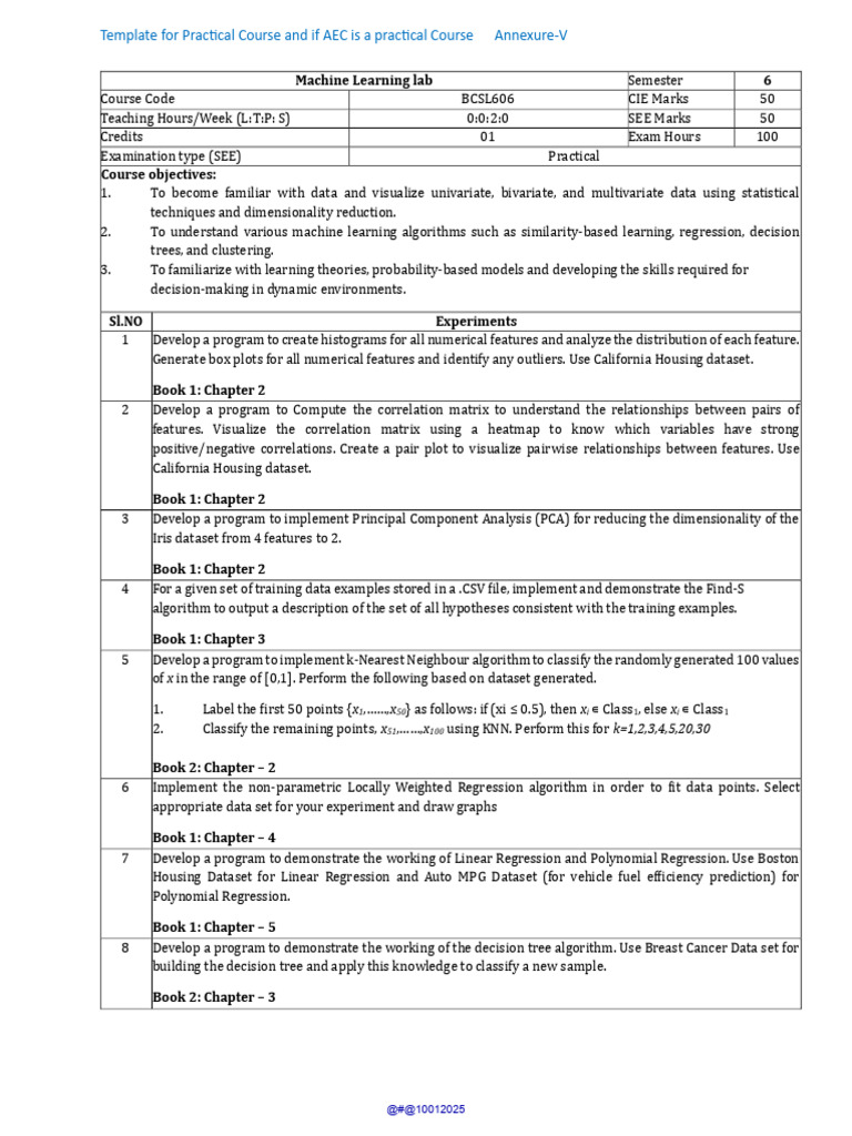 5. Department shall conduct a test of 100 marks after the completion of all the experiments listed in the