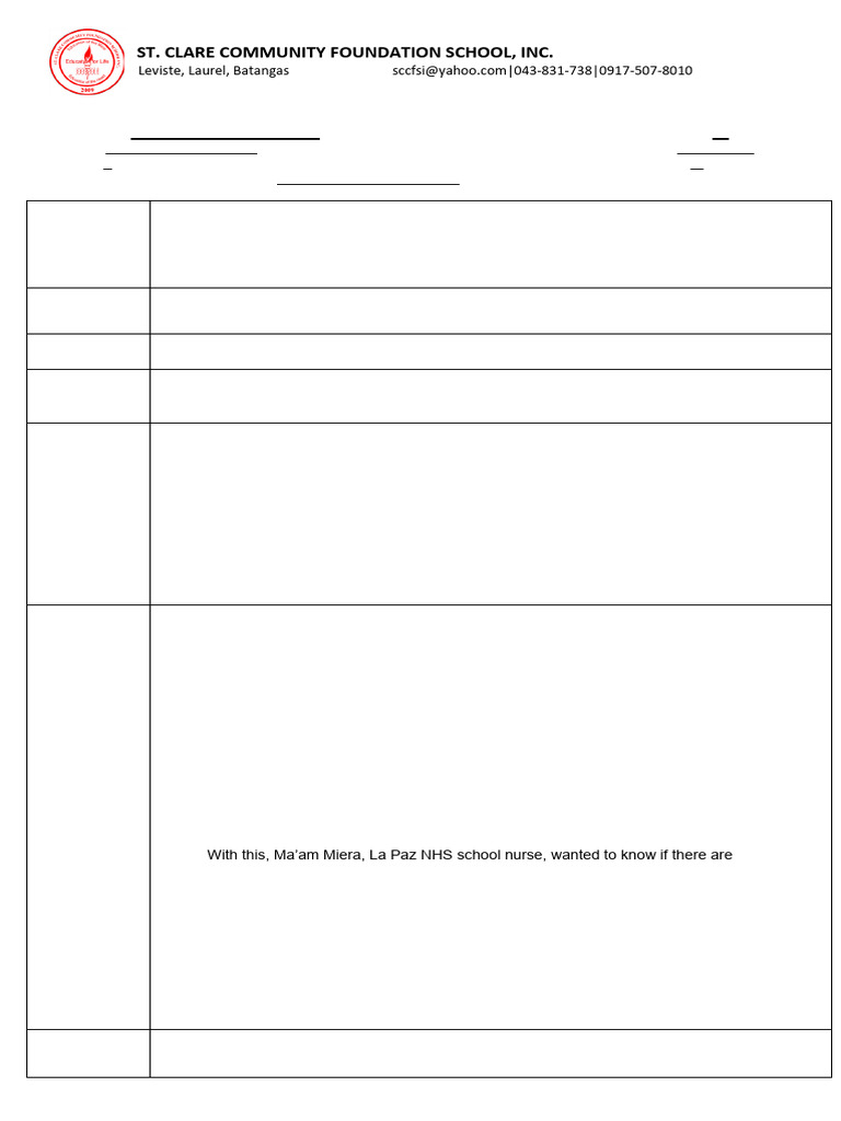With this, Ma’am Miera, La Paz NHS school nurse, wanted to know if there are