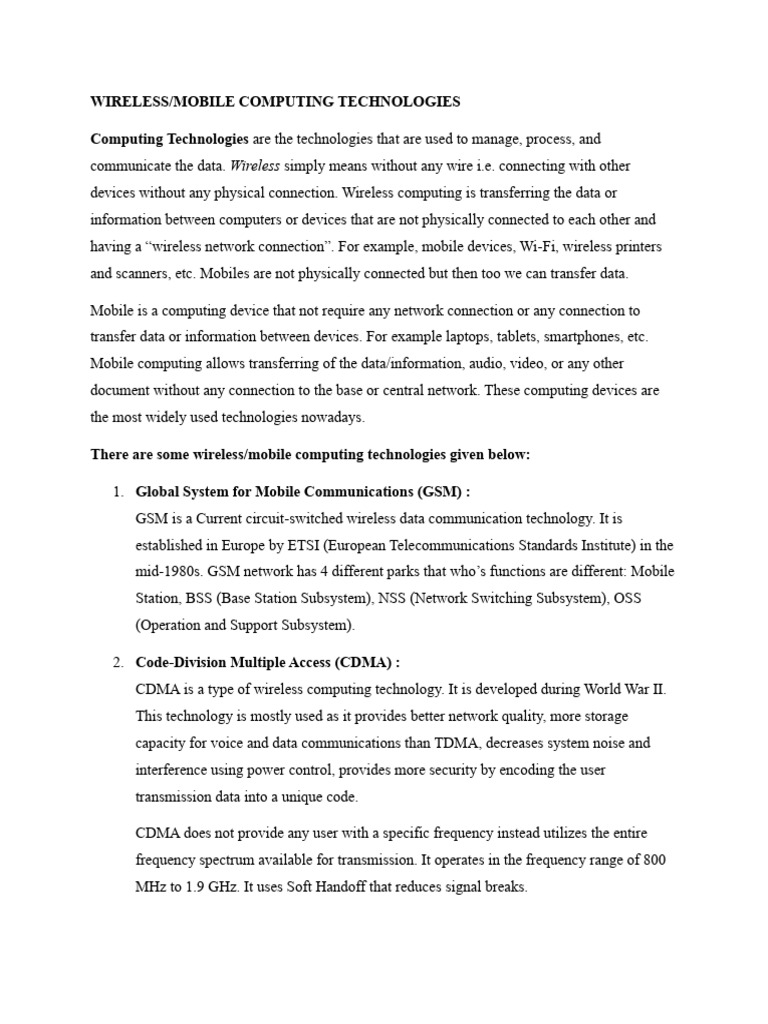 CDMA is a type of wireless computing technology. It is developed during World War II.