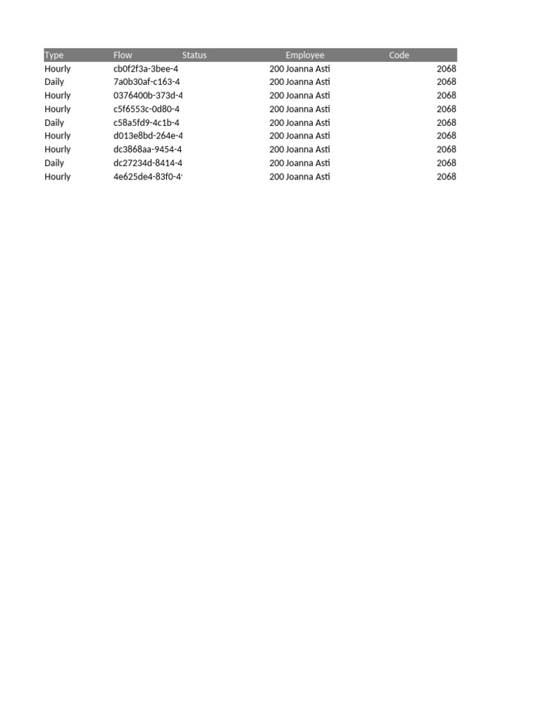 Type Flow Status Employee Code