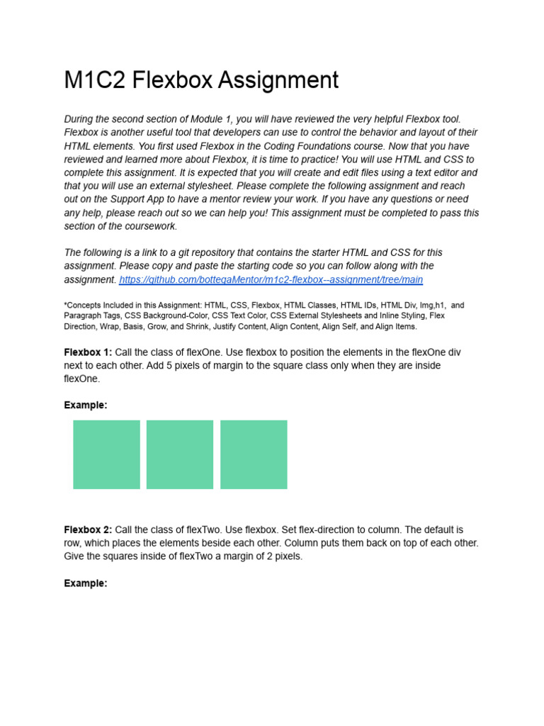 assignment. https://github.com/bottegaMentor/m1c2-flexbox--assignment/tree/main