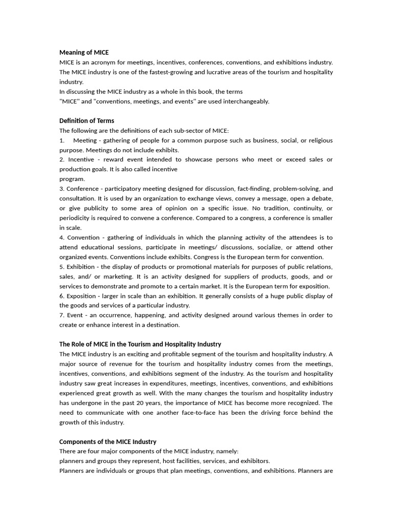 The MICE industry is an exciting and profitable segment of the tourism and hospitality industry. A