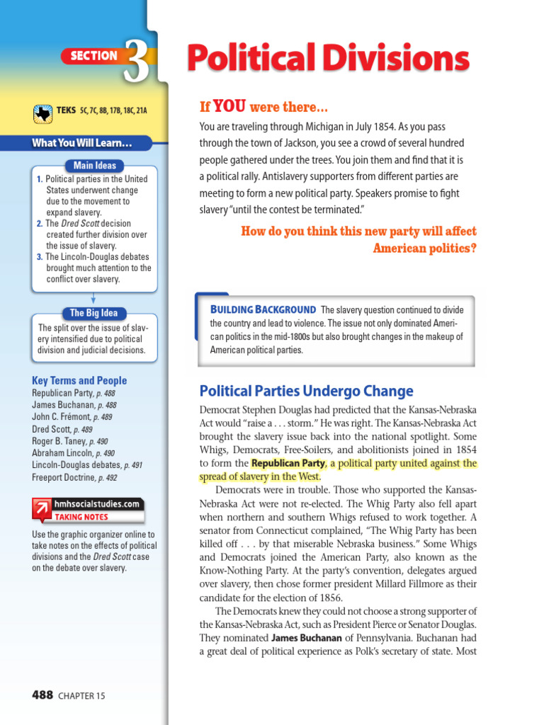 formed Republican Party? on political divisions and the Dred Scott decision.