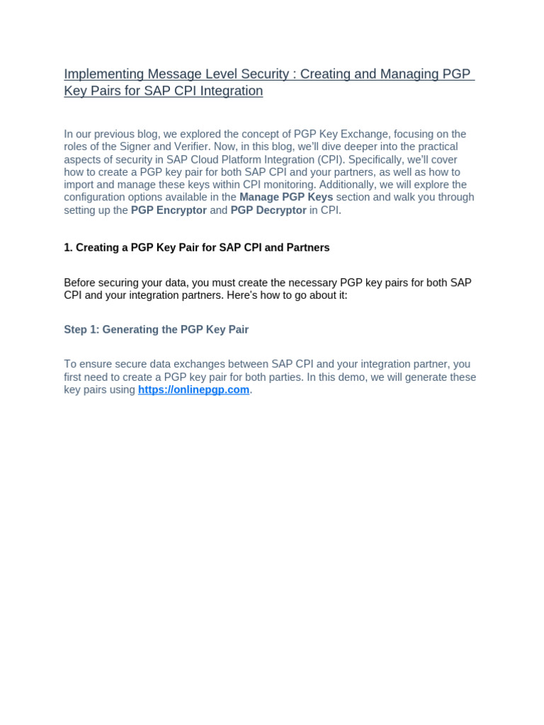 how to create a PGP key pair for both SAP CPI and your partners, as well as how to