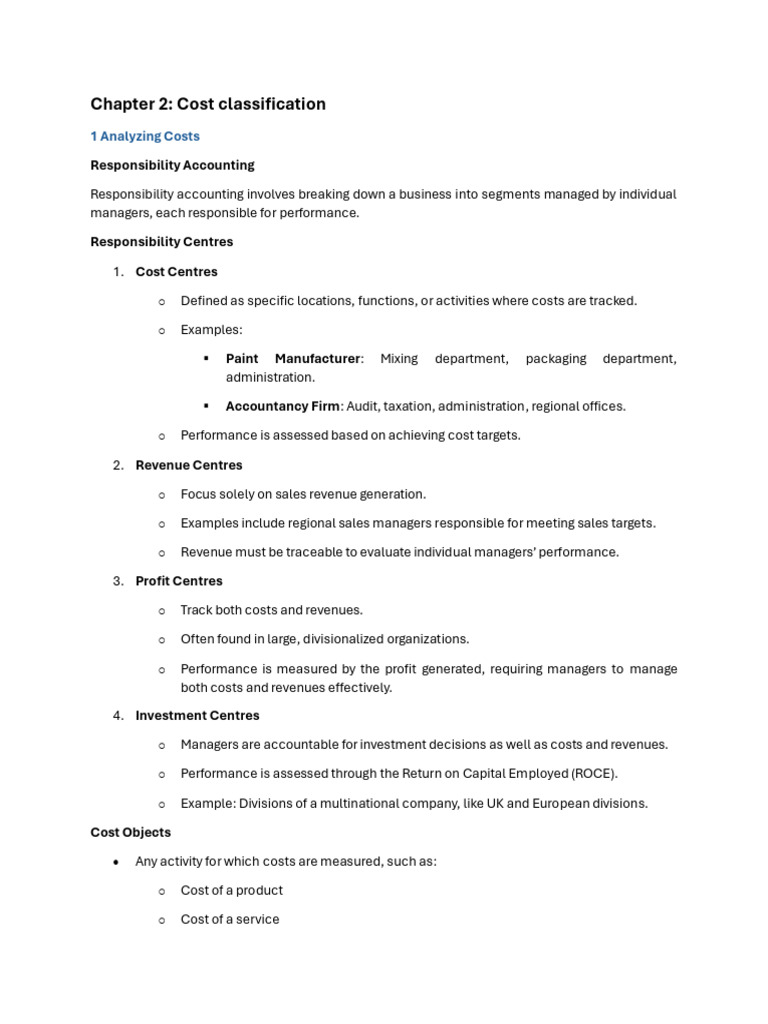 o Examples: Direct materials, labour, variable and fixed overheads.