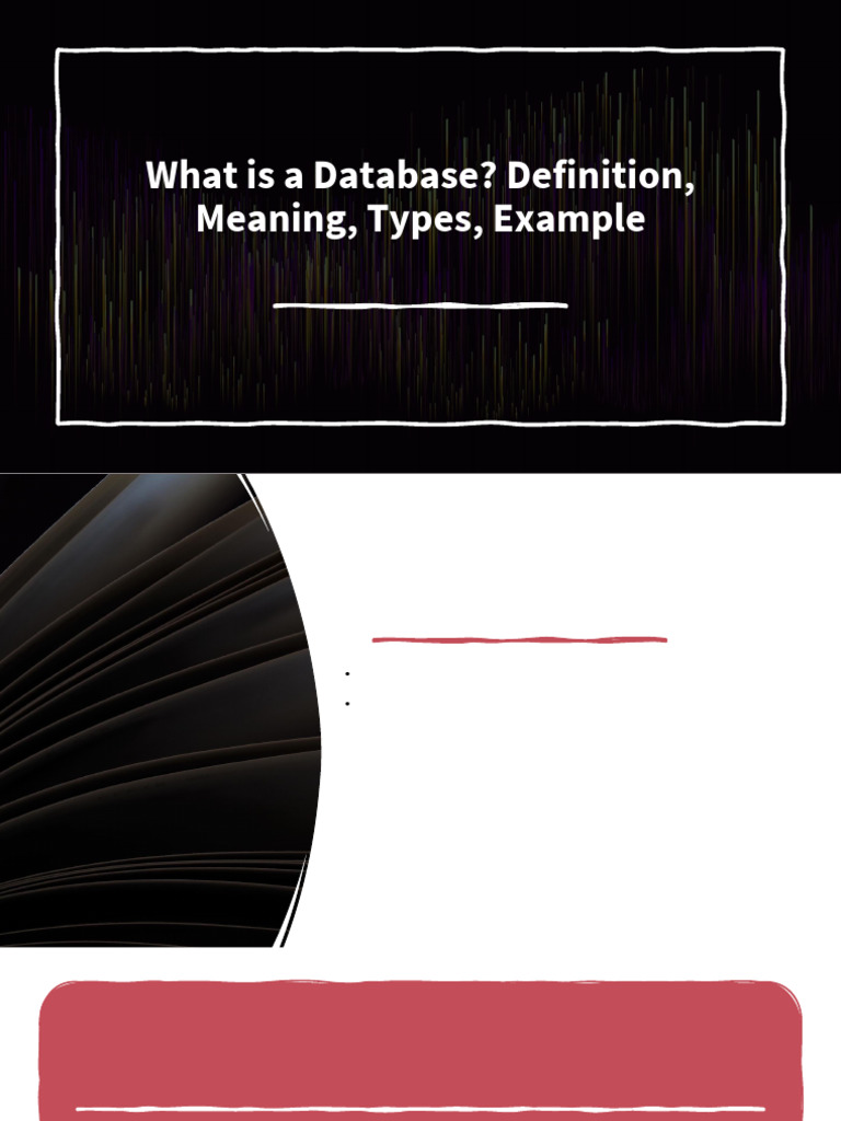 • Definition of Database or Database meaning: A database is a systematic collection of data. They support electronic storage