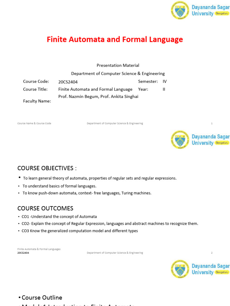 • To learn general theory of automata, properties of regular sets and regular expressions.