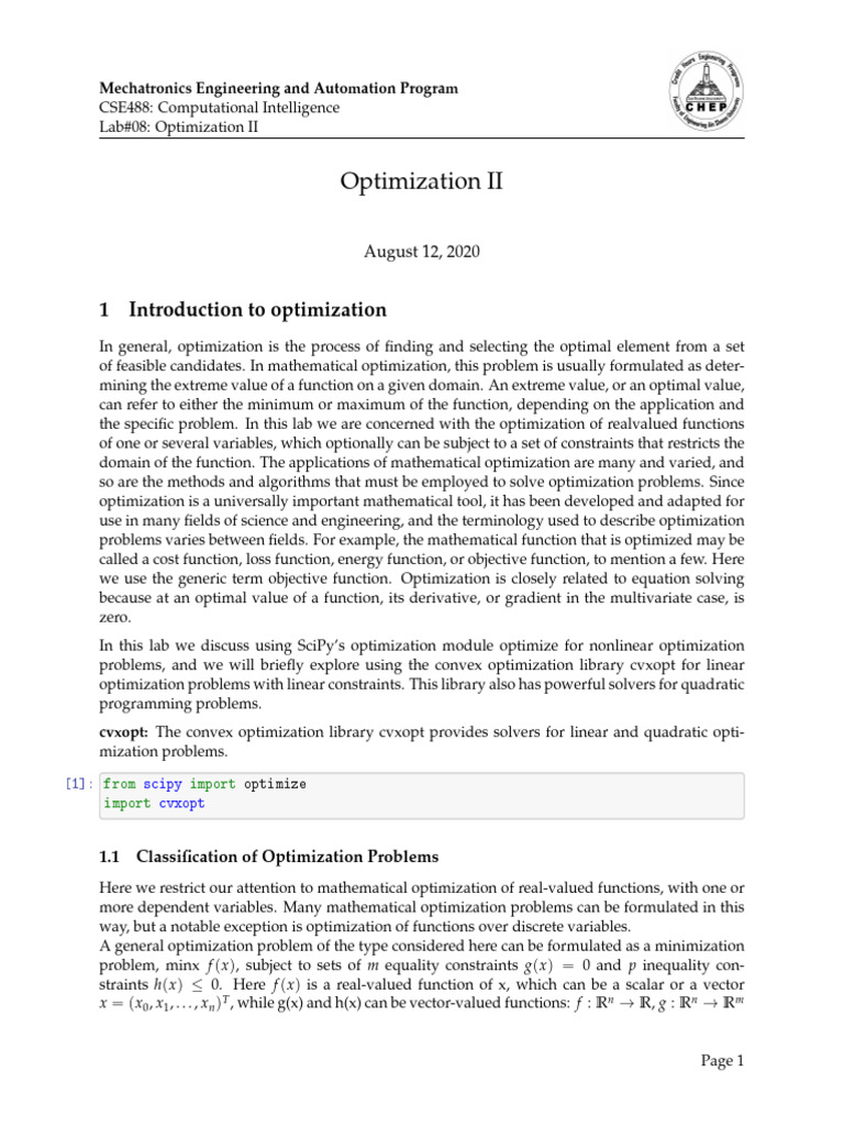 In this lab we discuss using SciPy’s optimization module optimize for nonlinear optimization