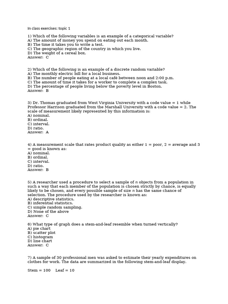 clothes for work. The data are summarized in the following stem-and-leaf display.