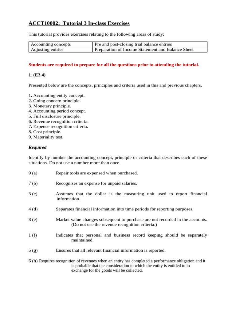 Students are required to prepare for all the questions prior to attending the tutorial.