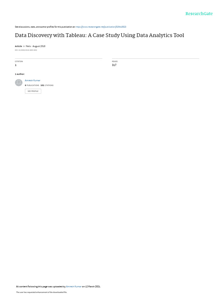 Data Discovery with Tableau: A Case Study Using Data Analytics Tool