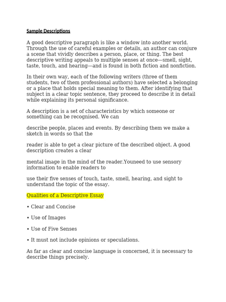 Qualities of a Descriptive Essay