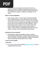 1. Active Learning Active learning involves engaging with the material through discussions, practice, and