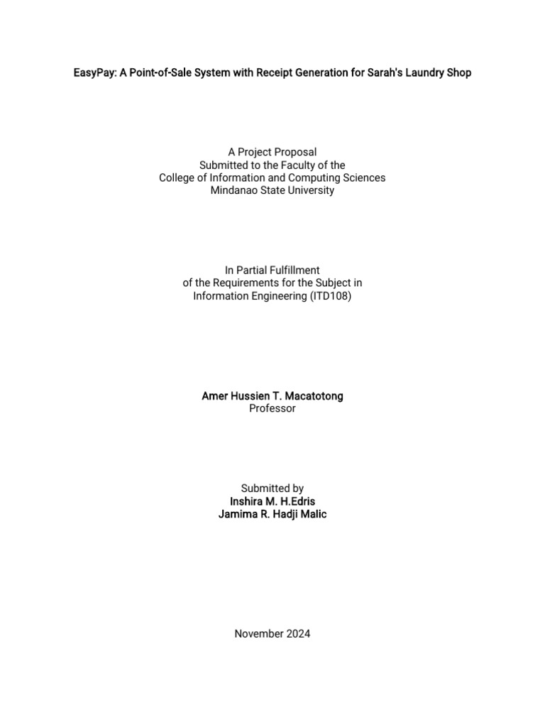 EasyPay: A Point-of-Sale System with Receipt Generation for Sarah's Laundry Shop