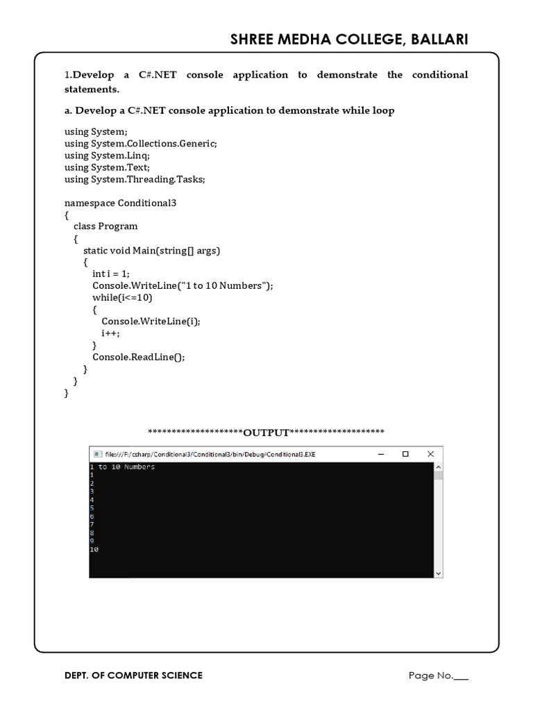 2.Develop a C#.NET console application to demonstrate the control statements.