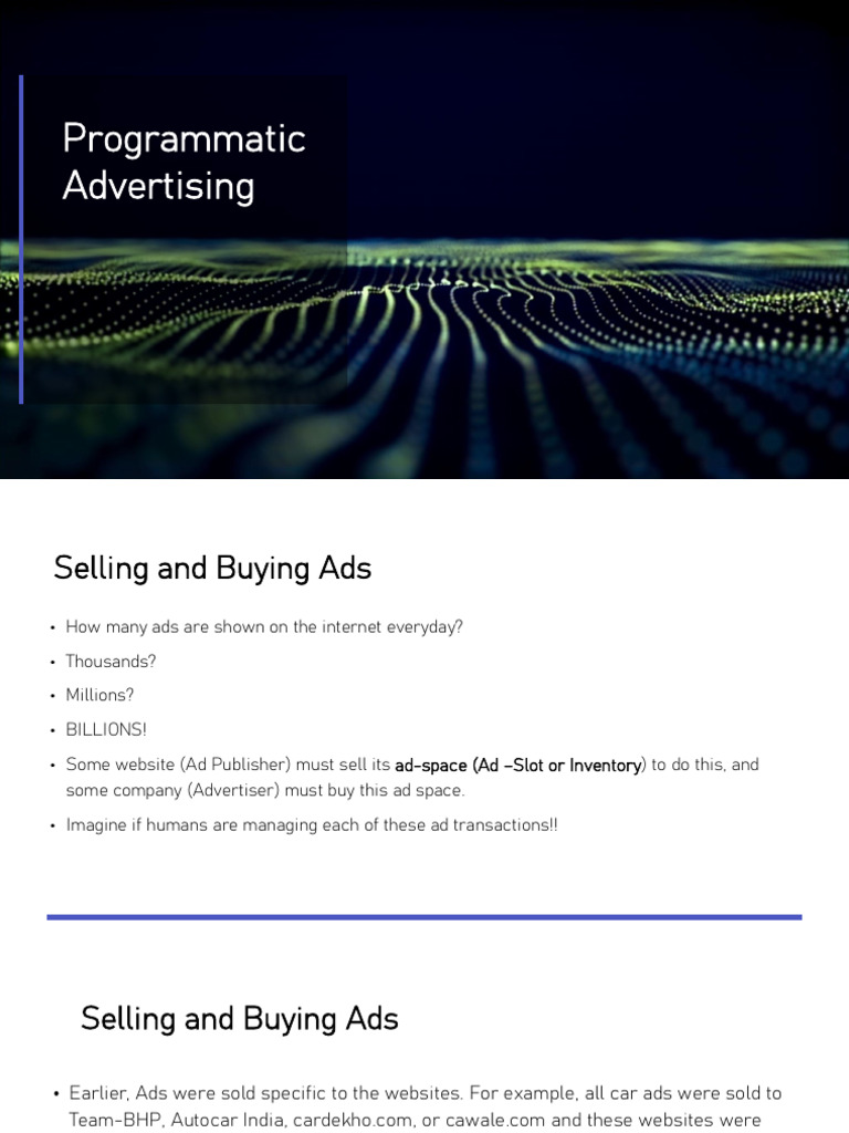 • Earlier, Ads were sold specific to the websites. For example, all car ads were sold to