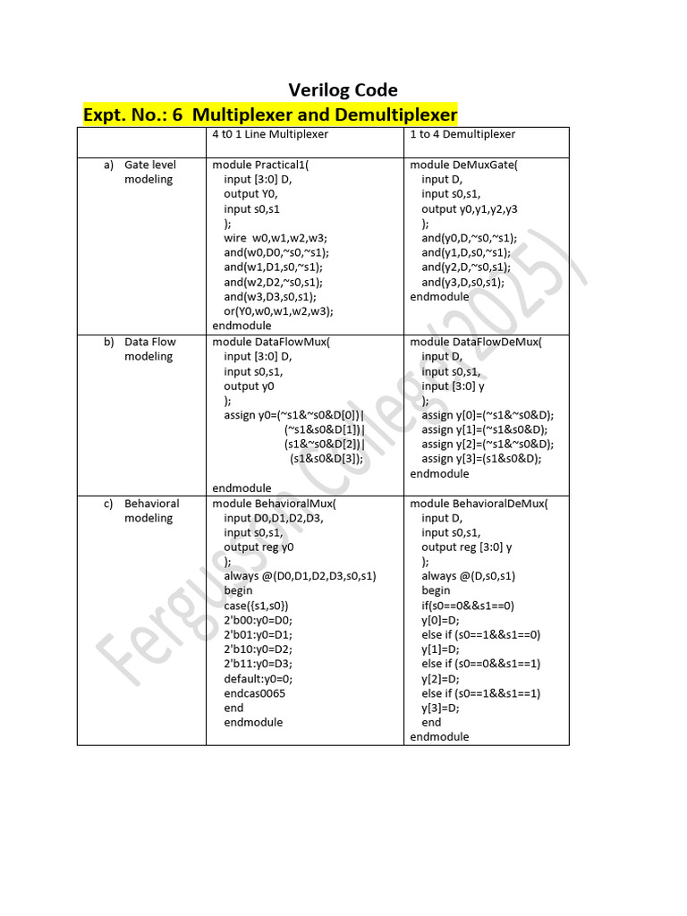 Expt. No.: 6 Multiplexer and Demultiplexer