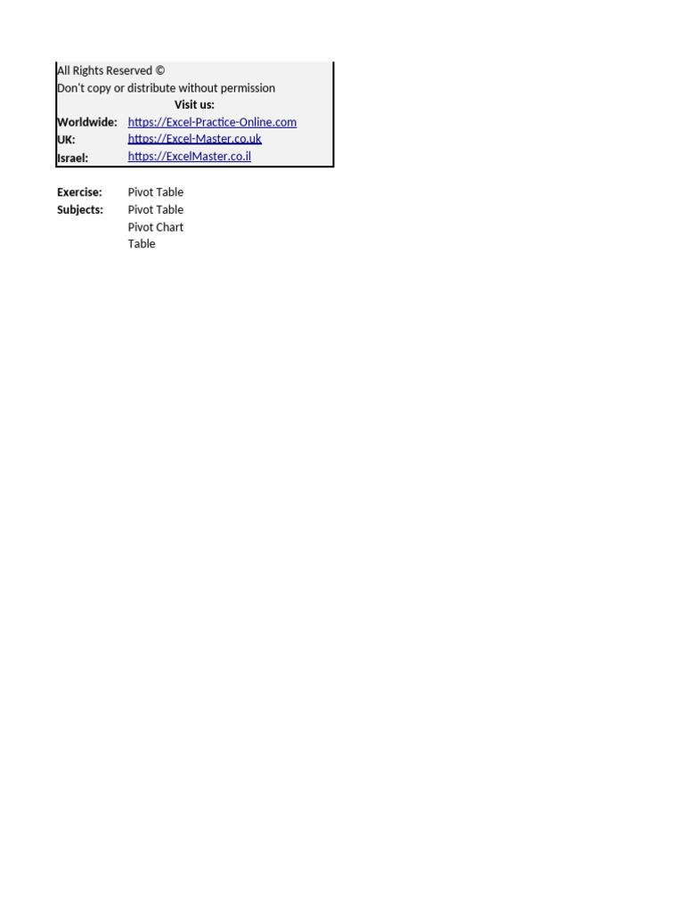 7 Based on the table from the previous question, and without removing any field - How can you change the pivot to group t