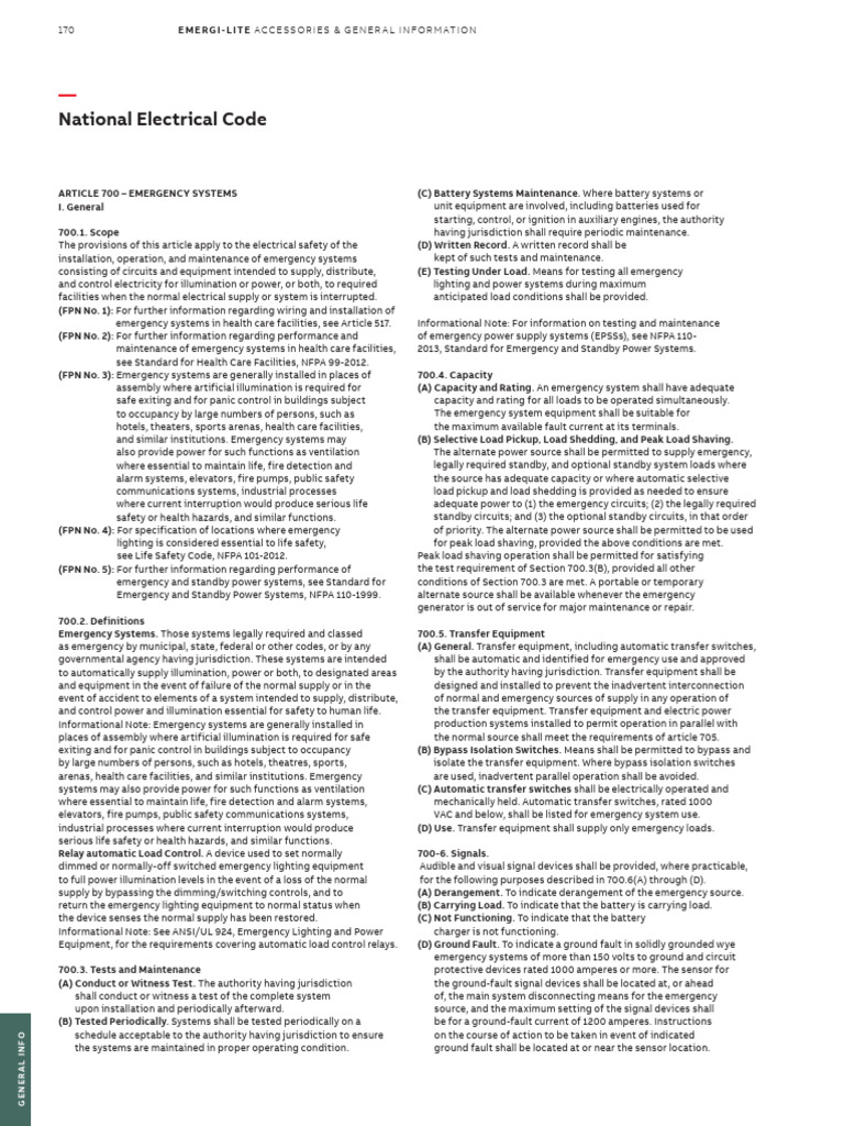 V. Control—Emergency Lighting Circuits National Electrical Code© 2014 National Electrical Code® is a