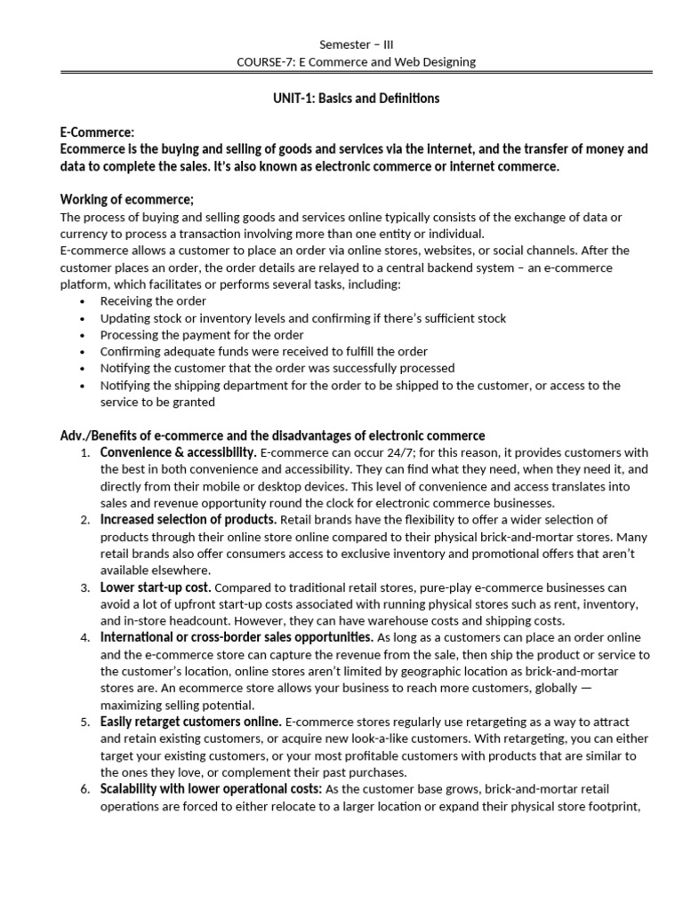 Adv./Benefits of e-commerce and the disadvantages of electronic commerce