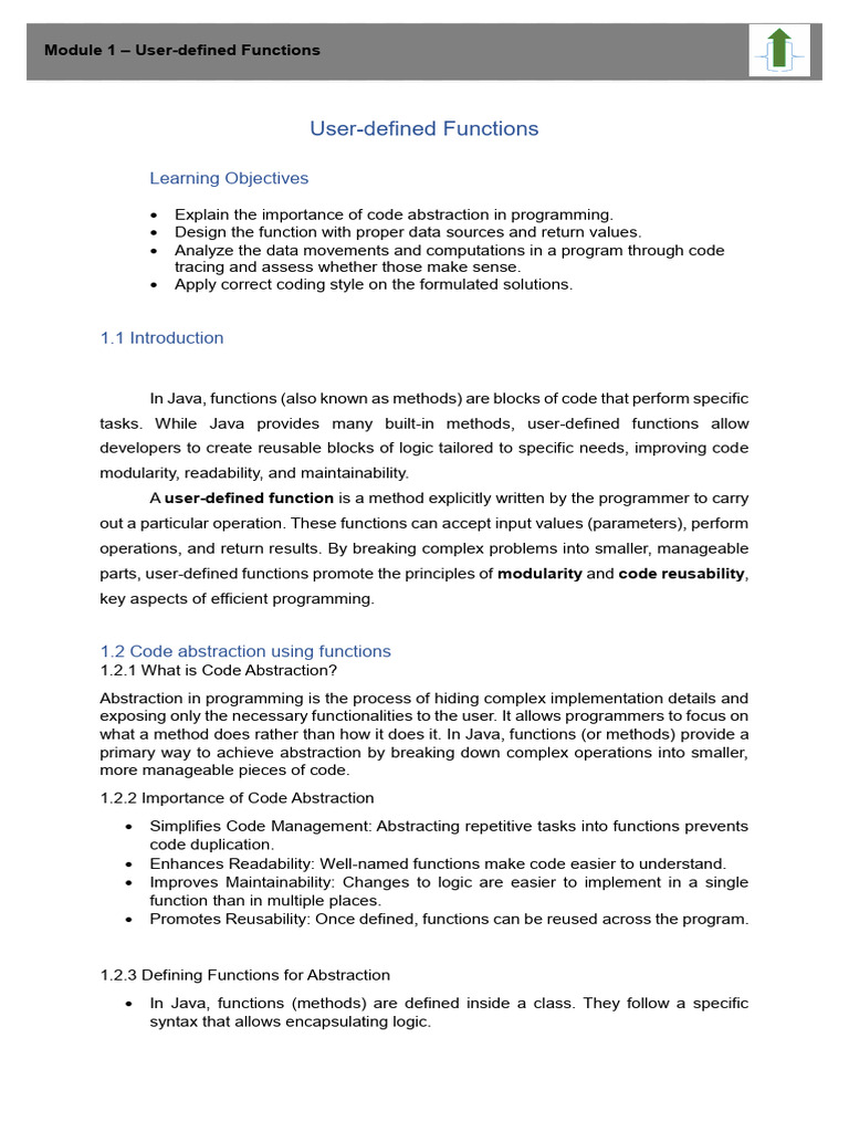 tasks. While Java provides many built-in methods, user-defined functions allow