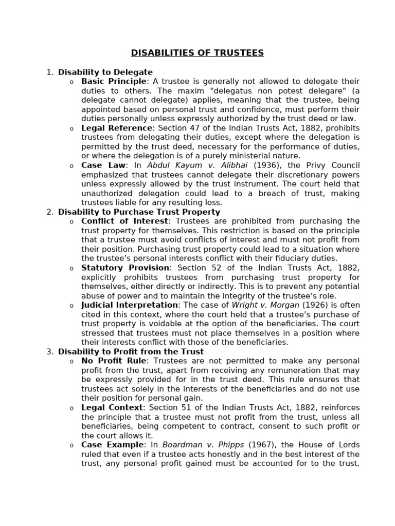 o Legal Reference: Section 47 of the Indian Trusts Act, 1882, prohibits