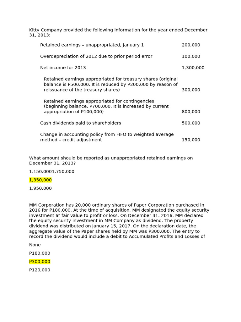 P1,750,000 and paid cash dividends of P1,000,000 on its ordinary shares. As of