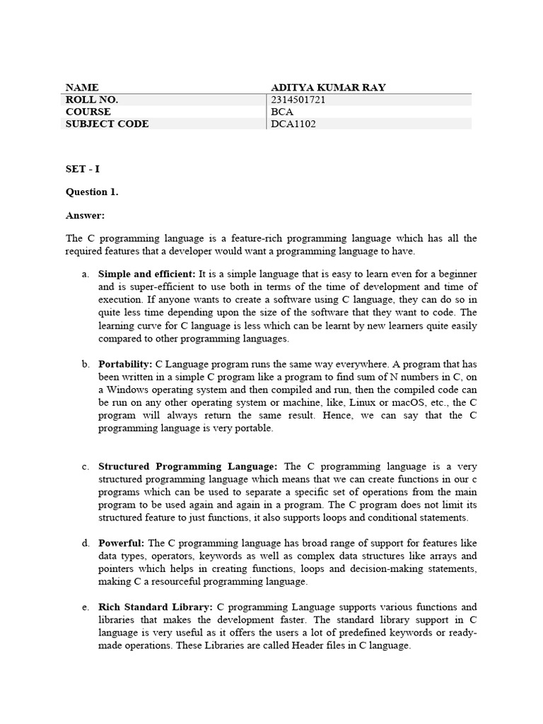 a. Simple and efficient: It is a simple language that is easy to learn even for a beginner
