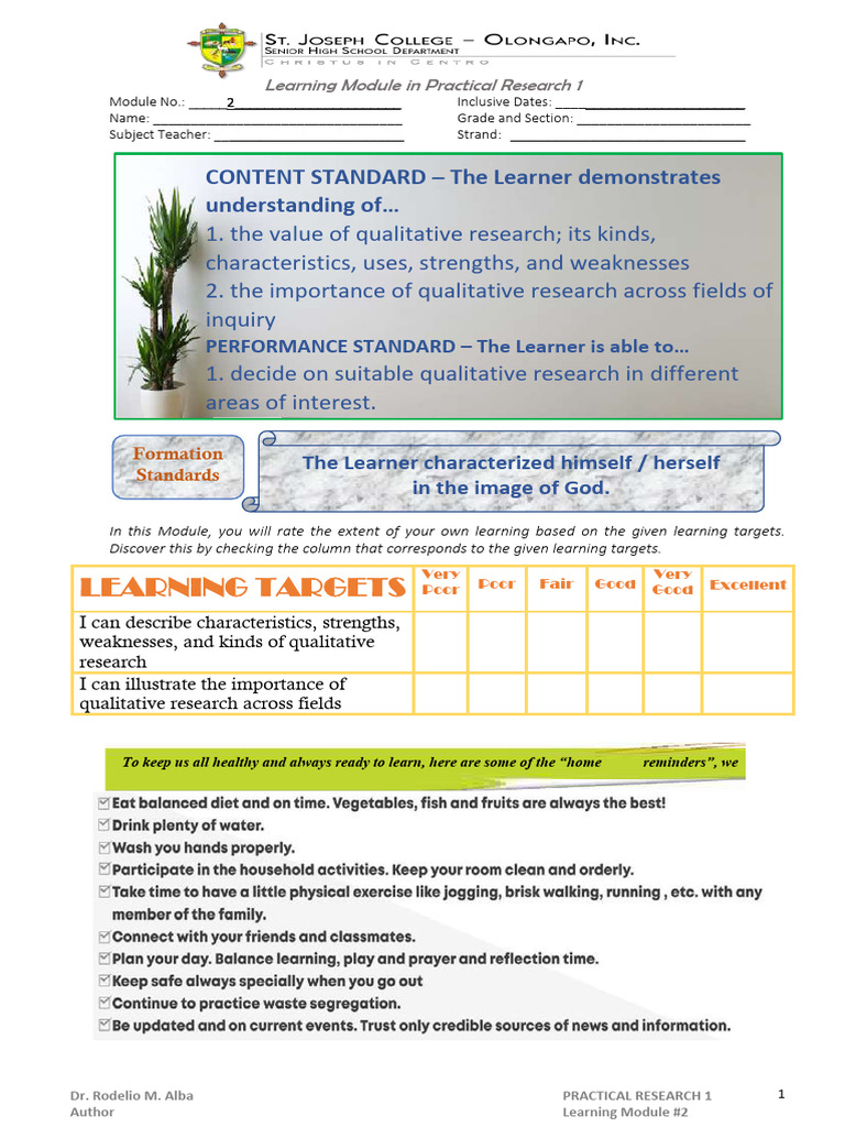 Dr. Rodelio M. Alba PRACTICAL RESEARCH 1 2