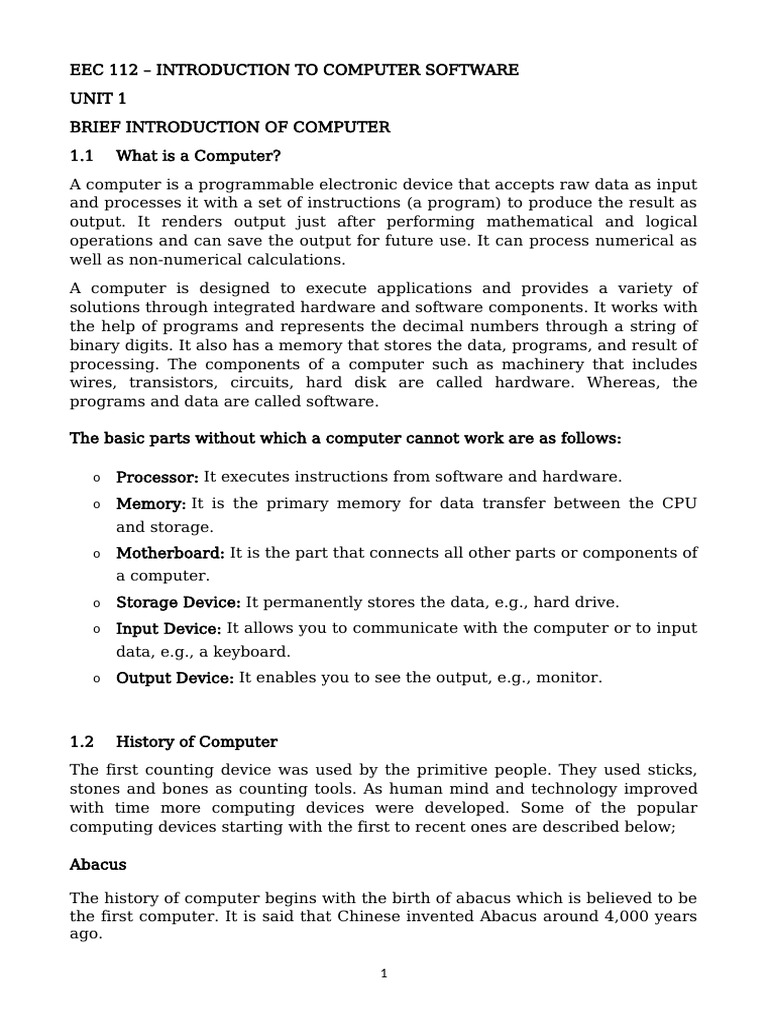 EEC 112 – INTRODUCTION TO COMPUTER SOFTWARE