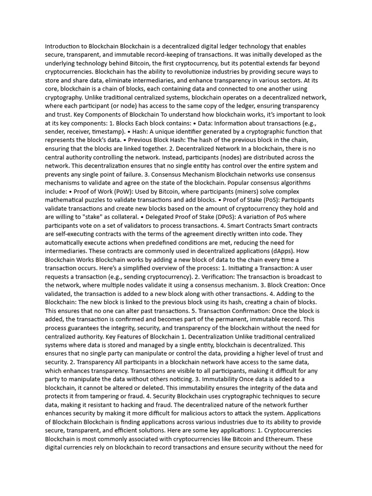 ensuring that the blocks are linked together. 2. Decentralized Network In a blockchain, there is no