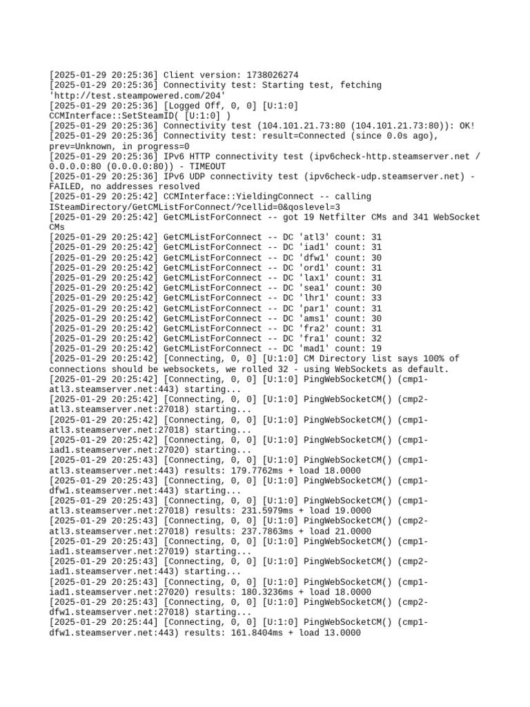 [2025-02-07 23:04:18] [Connecting, 4, 0] [U:1:66527666] CM Directory list says 100%
