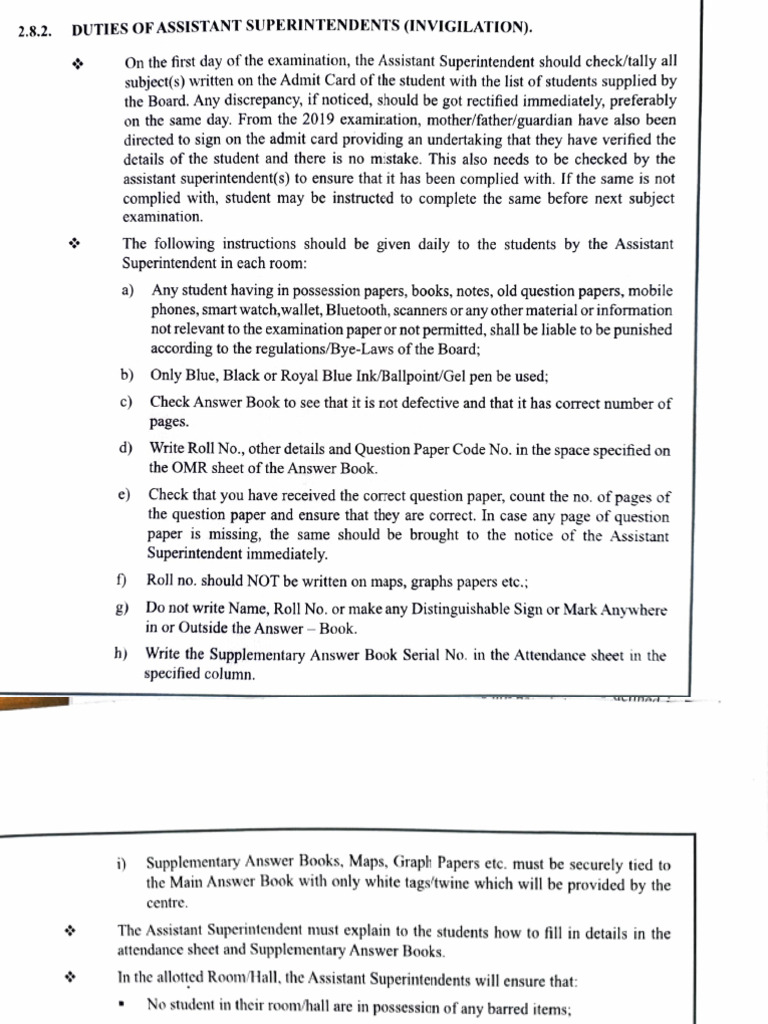 2.8.2. DUTIES OF ASSISTANT SUPERINTENDENTS (INVIGILATION).