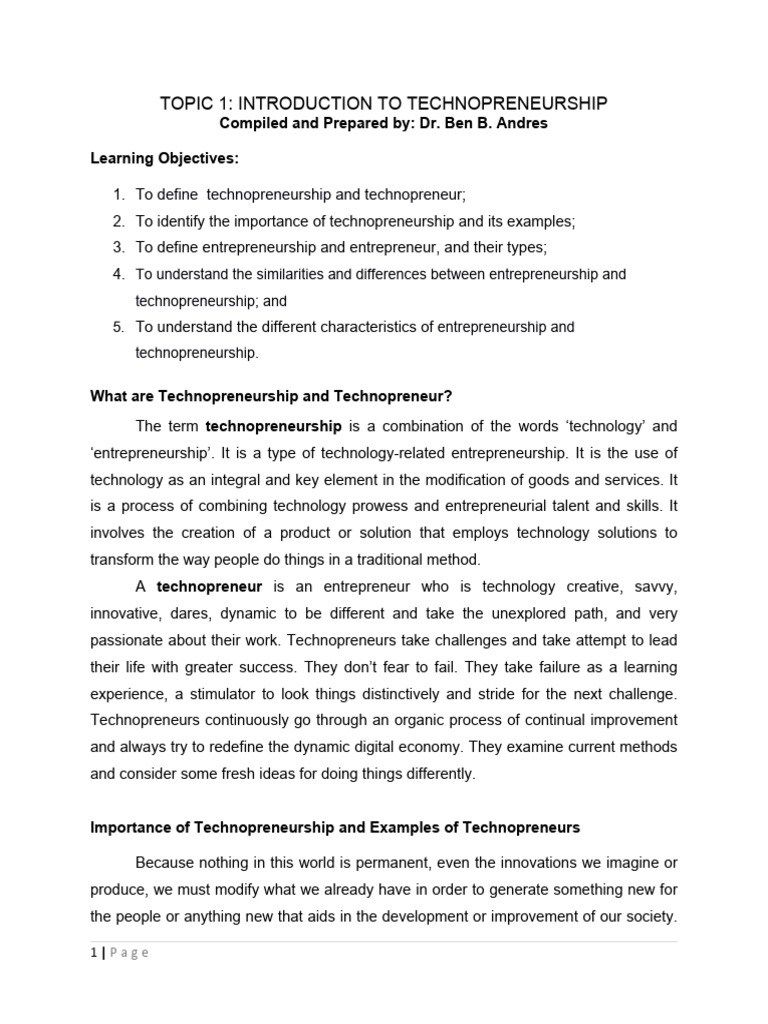 TOPIC 1: INTRODUCTION TO TECHNOPRENEURSHIP