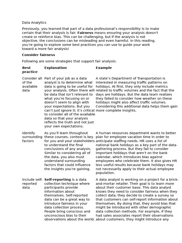certain that their analysis is fair. Fairness means ensuring your analysis doesn't