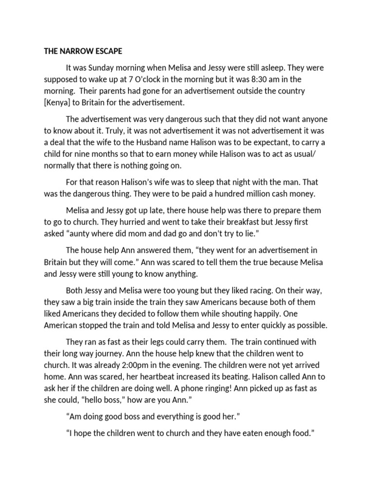 Britain but they will come.” Ann was scared to tell them the true because Melisa