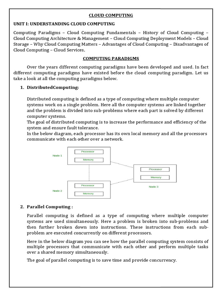 UNIT I: UNDERSTANDING CLOUD COMPUTING