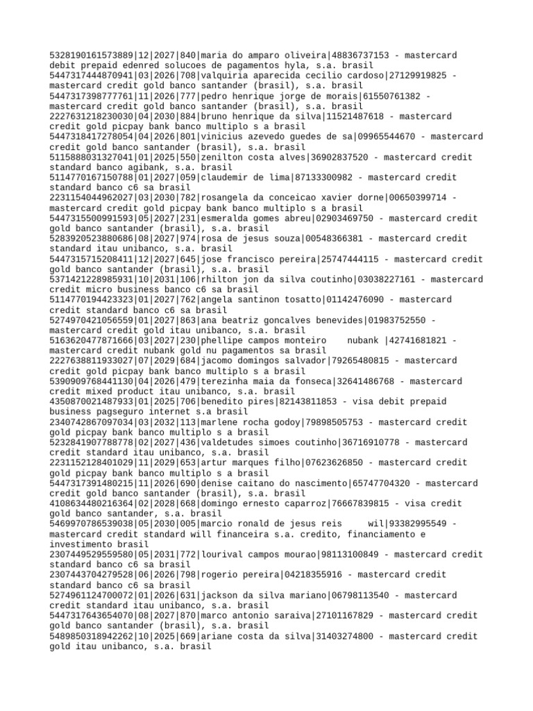 2307443704279528|06|2026|798|rogerio pereira|04218355916 - mastercard credit