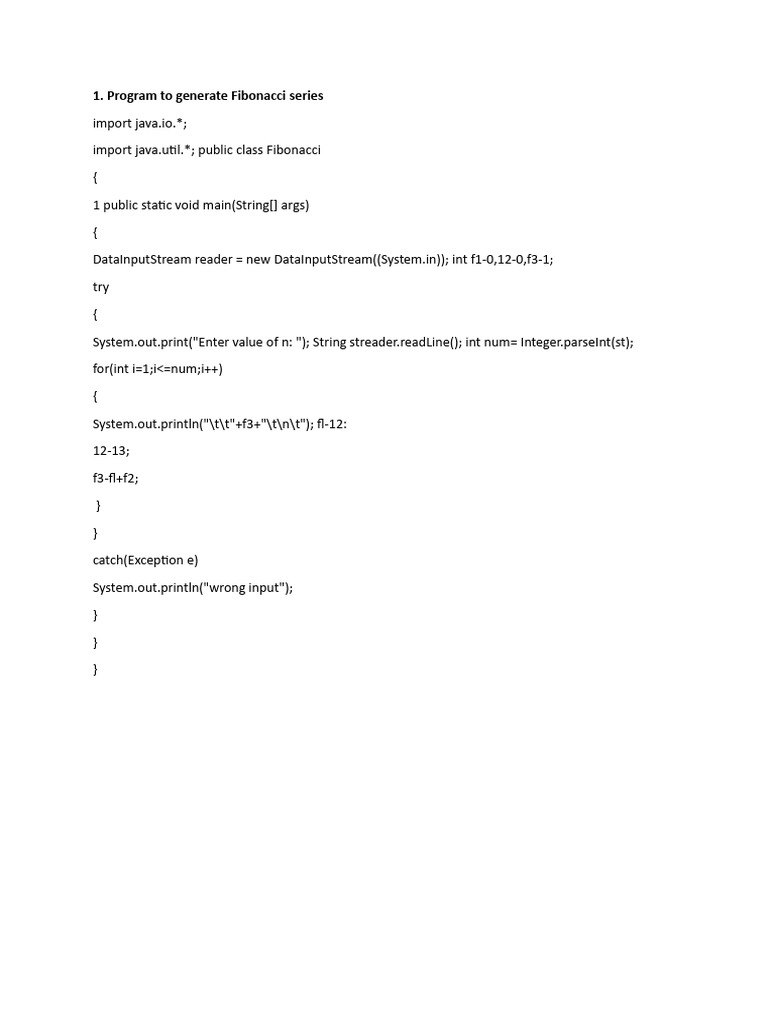 DataInputStream reader = new DataInputStream((System.in)); int f1-0,12-0,f3-1;