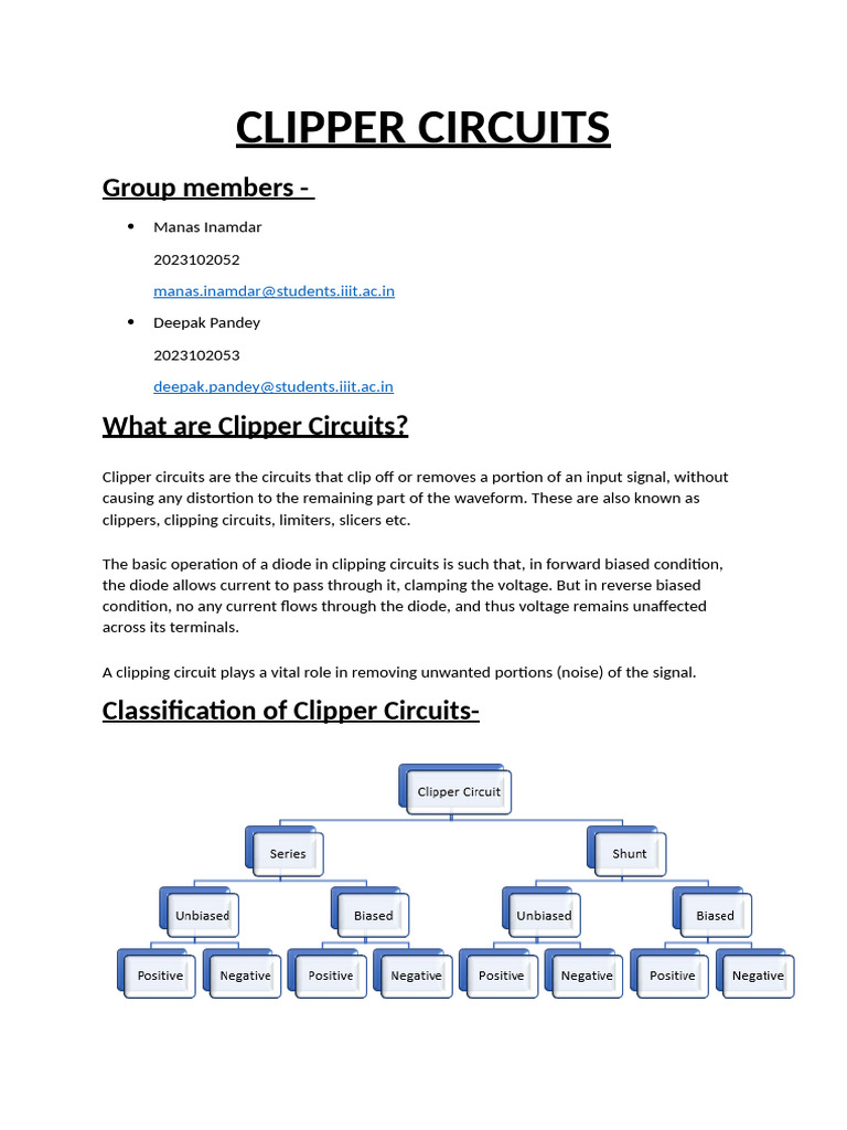 Clipper circuits are the circuits that clip off or removes a portion of an input signal, without