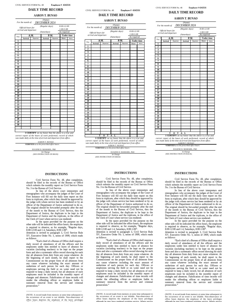 DAILY TIME RECORD CIVIL SERVICE FORM No. 48 Employee # 4242531