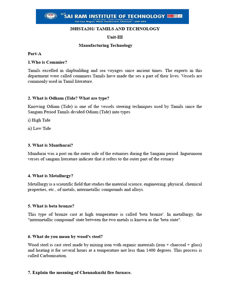 20HSTA201/ TAMILS AND TECHNOLOGY