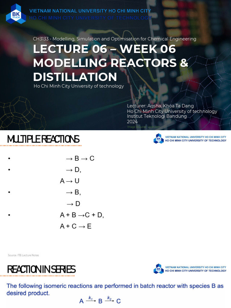 CH3133 - Modelling, Simulation and Optimisation for Chemical Engineering
