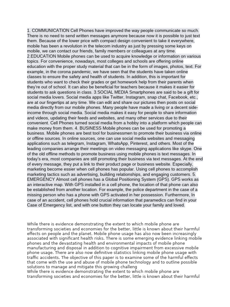 1. COMMUNICATION Cell Phones have improved the way people communicate so much.