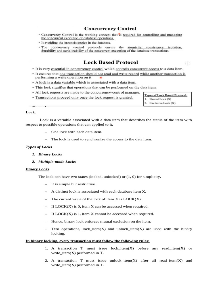 – If LOCK(X) is 1, item X cannot be accessed when required.