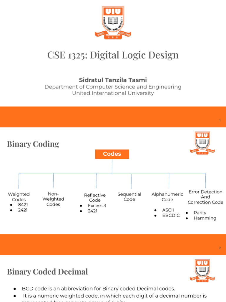 ● There are several BCD codes like 8421, 2421, 3321, 4221, 5211, 5311, 5421, etc.