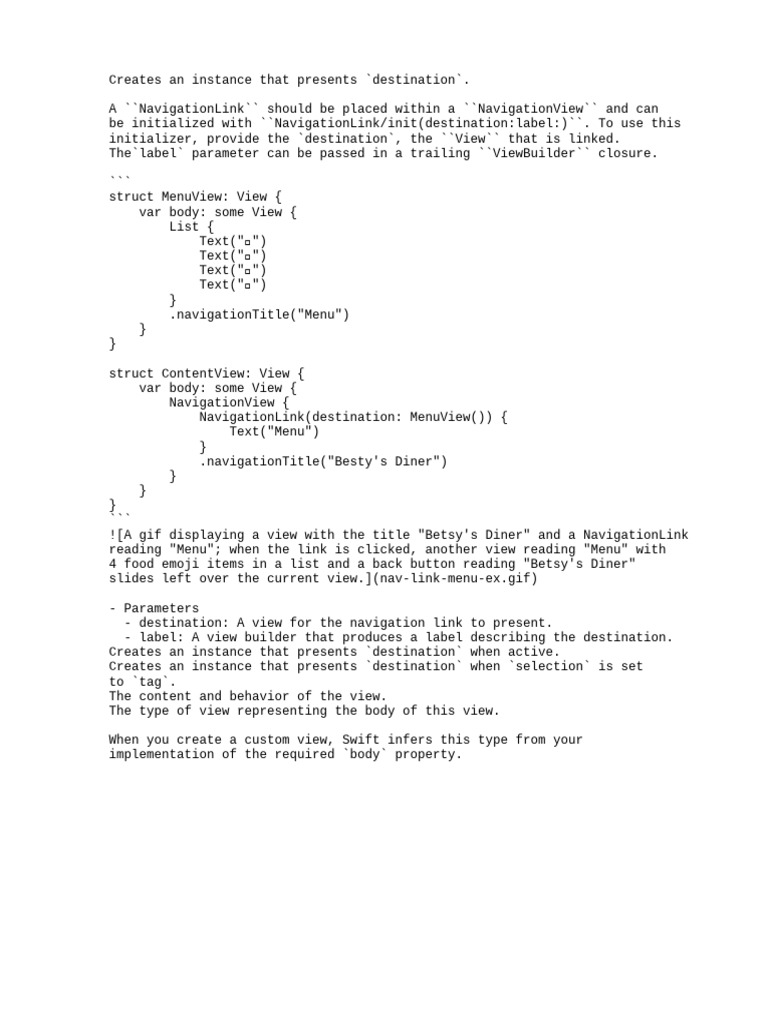 be initialized with ``NavigationLink/init(destination:label:)``. To use this