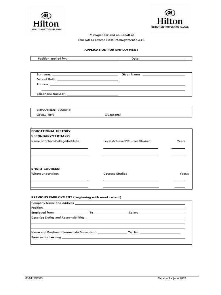 appointment offered will be subject to satisfactory references. Hilton Beirut HGH & MPH
