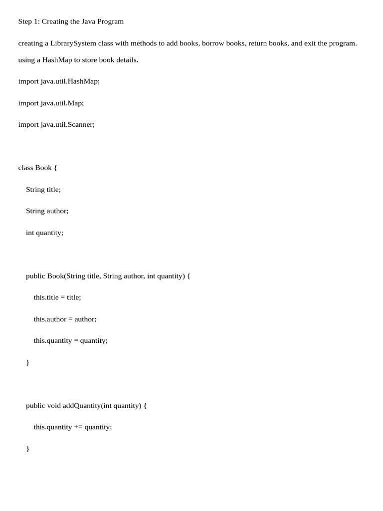 creating a LibrarySystem class with methods to add books, borrow books, return books, and exit the program.